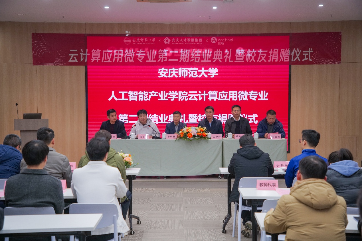 12月19日,公司在筑梦产业园隆重举行“云计算应用”微专业第二期结业典礼暨员工捐赠仪式。公司党委常委、副董事长申传胜出席活动。安庆市人才发展集团党委书记、董事长王中群,安畅集团总裁程…