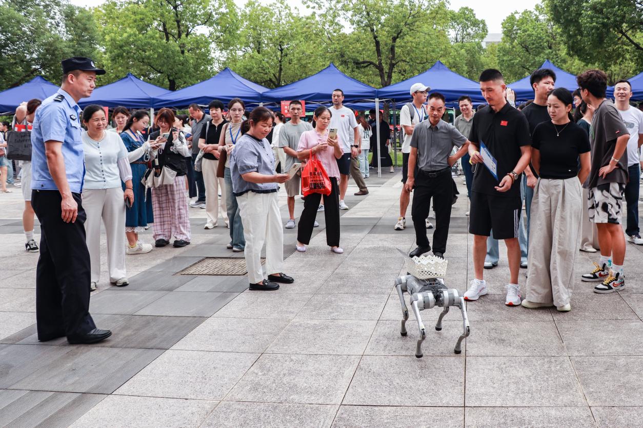 2025级新生王鑫正和上中班的弟弟王羿权在一旁围观。憨态可掬的机器狗摇着“尾巴”“递出”反诈传单,王羿权小心翼翼走近伸手拿过传单后紧紧攥在手里,低头对着机器狗连连念叨:“小狗真厉害。”“现在网络诈骗防不胜防,孩子刚上大学,我一直挺担心的。”王鑫母亲陶女士一边举着手机拍摄兄弟俩与机器狗互动的画面,一边不住点头:“我得赶紧把照片发朋友圈,给这样为员工考虑的公司点个赞!”