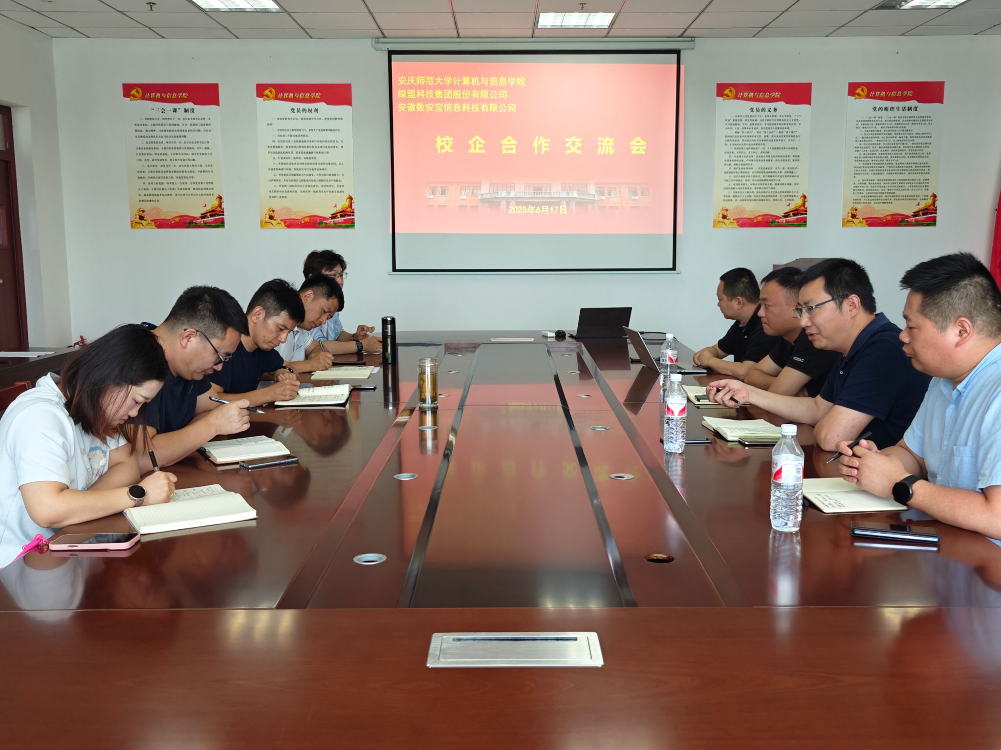 6月17日,太阳成tyc33455ccwww在L318会议室成功举办了校企合作交流座谈会。会议由经理王远志主持,副经理吴海峰、经理助理汪文明、公司博士教师代表以及绿盟集团、数安宝等企业代表共同出席,围绕网络安全人才培养、校企合作、专业建设及未来发展趋势等议题展开深入交流。