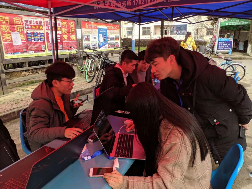 本次活动,主要是为同学们解决电脑硬件和软件两方面的问题。包括重装系统,安装matlab,ps, pr等常用软件,以及简单的电脑维修和清灰。为保证活动顺利进行,相关技术人员在维修前对志愿者们进行了培训,为活动的开展做了充足的准备,并奠定了坚实的理论和实践基础。活动开展期间,不时会有同学带着电脑过来维修,志愿者们积极地进行问题检测,为他们答疑解惑,让同学们更多地了解电脑相关知识,掌握基本的电脑故障处理方法。“在实践中学习,在实践中进步。”虽然维修过程比较辛苦,但是志愿者们一直保持着高昂的情绪,直至活动结束。最后,全体志愿者们在安苑食堂前留下了合影。