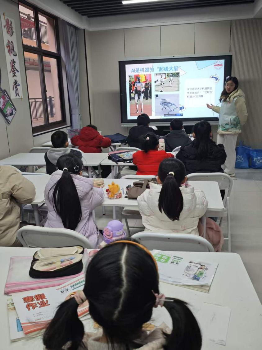 活动期间,志愿者们精心搭建集“知识、陪伴、实践”于一体的服务框架,通过作业辅导、趣味游戏、主题课堂等多元形式,为孩子们带来全方位的成长助力。依托公司人工智能专业特色,团队量身打造的两堂专题课程成为活动亮点:在“初识智能AI”启蒙课上,志愿者们借助生动演示、简易实验与趣味互动,将抽象的人工智能原理转化为孩子们易懂的生活场景,从智能音箱的语音交互到机器人的简单指令,一步步点燃孩子们对科技探索的好奇心;在“寒假居家安全”知识课上,通过情景模拟、问答竞赛等沉浸式方式,帮助孩子们筑牢安全防线,提升自我防护意识与应急处理能力。课堂上,孩子们踊跃举手、积极互动,眼神中满是对知识的渴望,欢声笑语间,科技种子与安全理念一同生根发芽。
