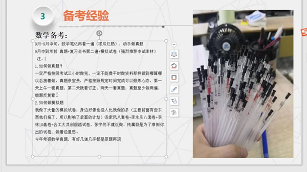 在线上问答环节,在线同学们积极提问,就专业院校选择、复习策略、时间安排等具体问题与考研同学进行了交流,三位同学都一一详细解答,再次强调“基础”和“心态”的重要性。会后公司团学组织还建立了2021届考研QQ交流群,营造良好的考研备战氛围,方便计划考研的同学获取更多考研信息。