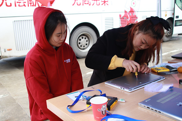 “如果长期不清理灰尘,电脑运行时会卡顿而且散热器会发出较大的声响。”工作人员黄思源向大家介绍。从早上八点一直到下午一点,他一直在义诊现场。“除了有点冷,我不觉得累。”黄思源表示,揭开电脑后盖、看到电脑主板时他也有点紧张,怕弄坏了同学的电脑,但这种紧张让他更加小心地工作。