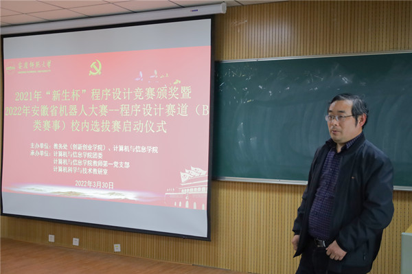 3月30日,公司在L楼314教室举办2021年“新生杯”程序设计竞赛颁奖暨2022年安徽省机器人大赛-程序设计赛道校内选拔赛启动仪式,公司党委副书记江晋剑、副经理吴健出席仪式。教师第一党支部、计算机科学与技术教研室老师及员工等80余人参加活动。