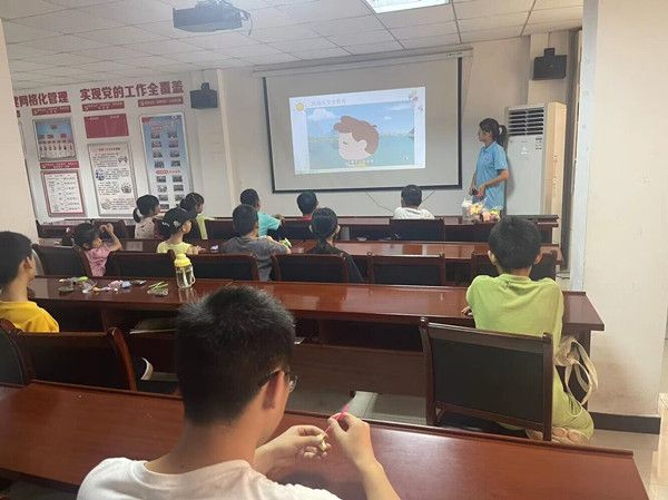 为进一步增强防溺水安全宣传效果,实践团成员精心制作了防溺水宣传PPT,7月14日前往周边艺术教育机构和社区工作站进行深入宣讲。团队成员用发生在身边的一个个真实案例、一组组触目惊心的数据,让家长和小朋友们深刻意识到溺水事故的严重后果,并通过近年来发生在身边的青少年溺水事故案例,告诫居民们远离河流、池塘、水库等高危险水域,最后用通俗易懂的语言讲解了溺水的预防措施、现场演示“自救”与“他救”等相关知识,呼吁全体居民发现私自游泳或溺水牢记“两会”:会劝止、报告,会自护、互救;做到保己救人,见义智为。期间,还进行了“预防溺水,珍爱生命从我做起”签名承诺,宣讲后还鼓励小朋友们将已掌握的防溺水知识,运用图画和文字的形式开展“画”说防溺水绘画活动。