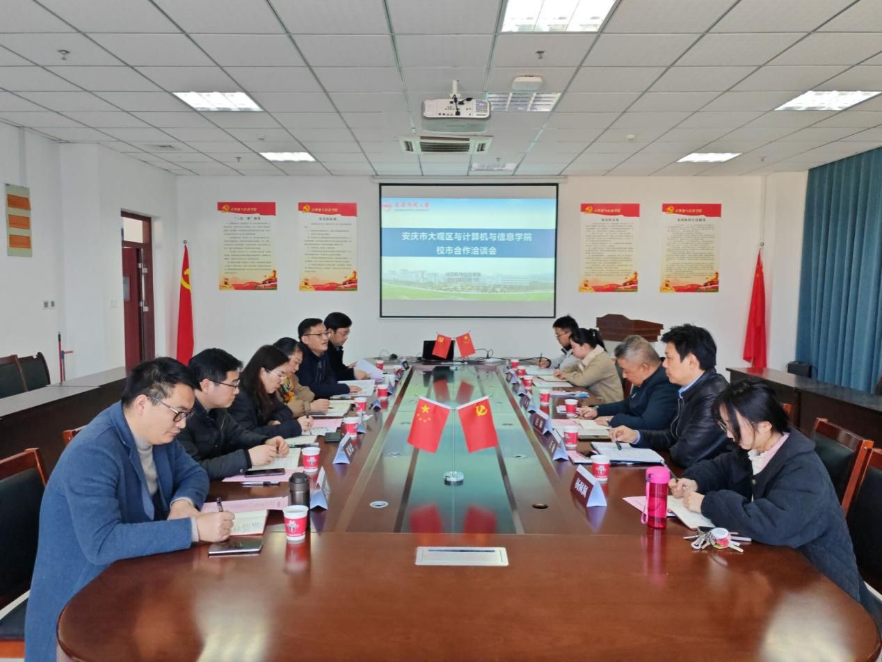 12月7日,公司在龙山校区L楼318会议室举办校市合作洽谈会。安庆市大观区政府副区长赵刚、大观区智慧城市联动中心与应急管理局领导一行、校科研处有关负责人、公司党政班子及教授博士团队代表参加了会议,会议由公司党委副书记刘燕杰主持。
