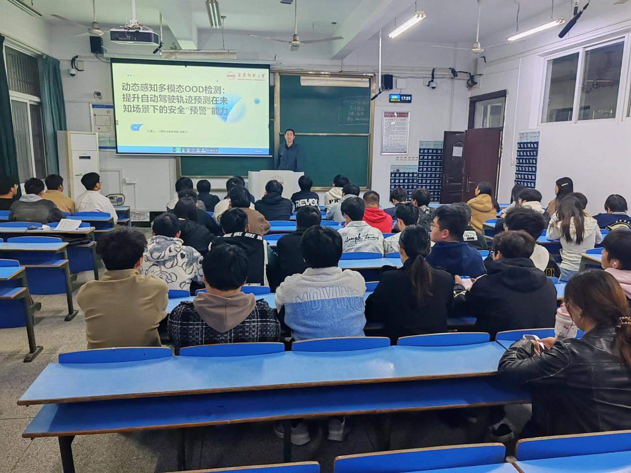 11月4日,公司刘晓飞副教授在C104作题为“动态感知多模态OOD检测:提升自动驾驶轨迹预测在未知场景下的安全预警能力”的学术报告,太阳成tyc33455ccwww2023级数据科学与大数据技术班全体同学参与了本次报告会。