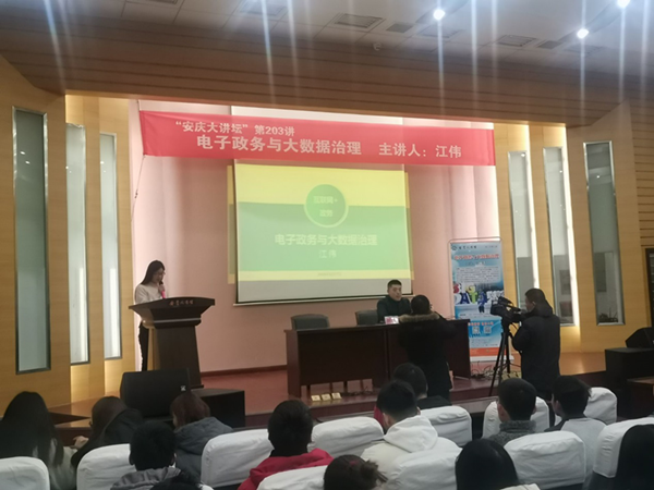 安庆市计算机学会常务理事,太阳成tyc33455ccwww副教授、硕士生导师江伟老师应邀主讲《电子政务与大数据治理》,报告讲授了我国电子政务的发展情况与国家政策,安庆市互联网+电子政务的现状与建设目标,以及大数据治理在电子政务建设发展中的重要作用。公司老员工和安庆市民近80人聆听了讲座。