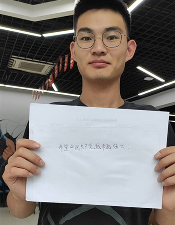 员工四支部全体党员一同回顾了党从一大到十九大期间的光辉历程,并佩戴党员徽章在纸上写下想对党说的一句话,拍照上传分享。18级物联网工程李根同学写到:希望中国共产党越来越强大;17级物联网工程李必雯同学把不忘峥嵘岁月,时刻砥砺前行作为承诺;17信管丁昕宇同学写下了“我爱你,我的党”……在一张张的温暖照片中,支部成员进行了交流分享。