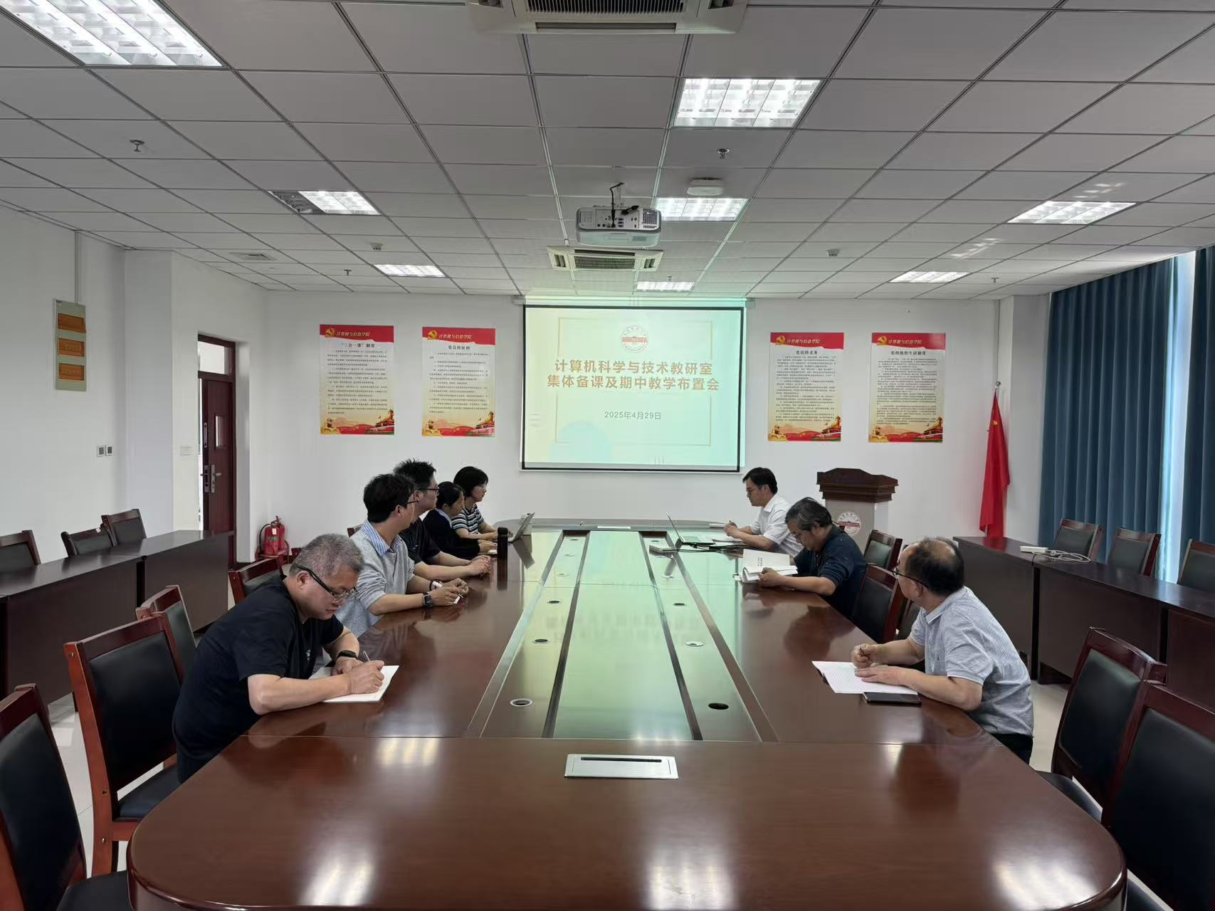 4月29日下午,计算机科学与技术教研室在L311会议室开展集体备课及期中教学布置会议。会议由教研室主任詹青主持,教研室各位教师参加此次会议。首先,詹青就课程作业设置及管理、期中教学检查、本科毕业答辩、本科专业实践等相关工作进行了说明和布置,强调了集体备课的重要性,指出这是教师分享教学经验、提高教学质量的有效途径。随后,教研室各位教师积极就计算机科学与技术的课程建设与专业建设展开了深入讨论,将各自的教学经验进行了分享,对教研室的一流课程、一流教材、教研论文的培育建设进行了规划。