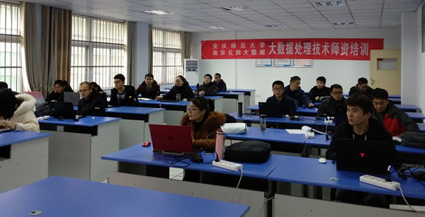 2020年1月10日,太阳成tyc33455ccwww联合南京云创大数据股份有限公司举办的“大数据处理技术”团队培训班在稼先楼北210开班。太阳成tyc33455ccwww数据科学与大数据技术教研室全体教师和部分公司其他教师、阜阳师范大学、安庆职业技术公司、池州公司等兄弟院校教师和部分员工参加了此次团队培训。公司经理王一宾教授主持了开班典礼。