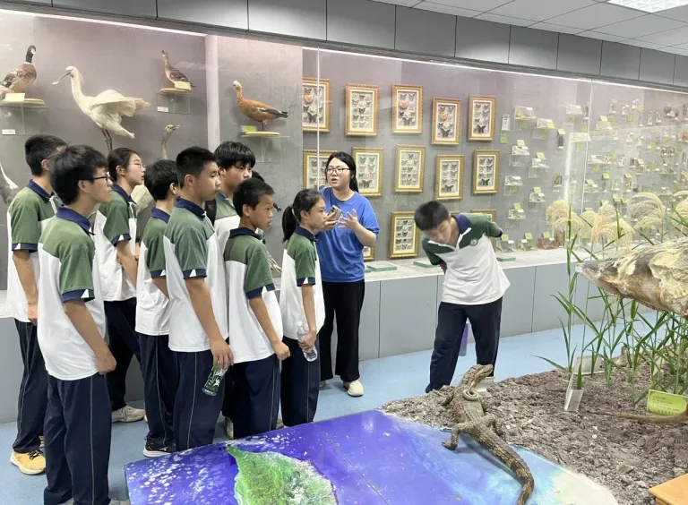 在生命科学公司标本馆,党员教师以 “党建红” 引领 “生态绿”,通过讲解珍稀动植物标本背后的保护故事,将 “绿水青山就是金山银山” 的发展理念融入科普教学。