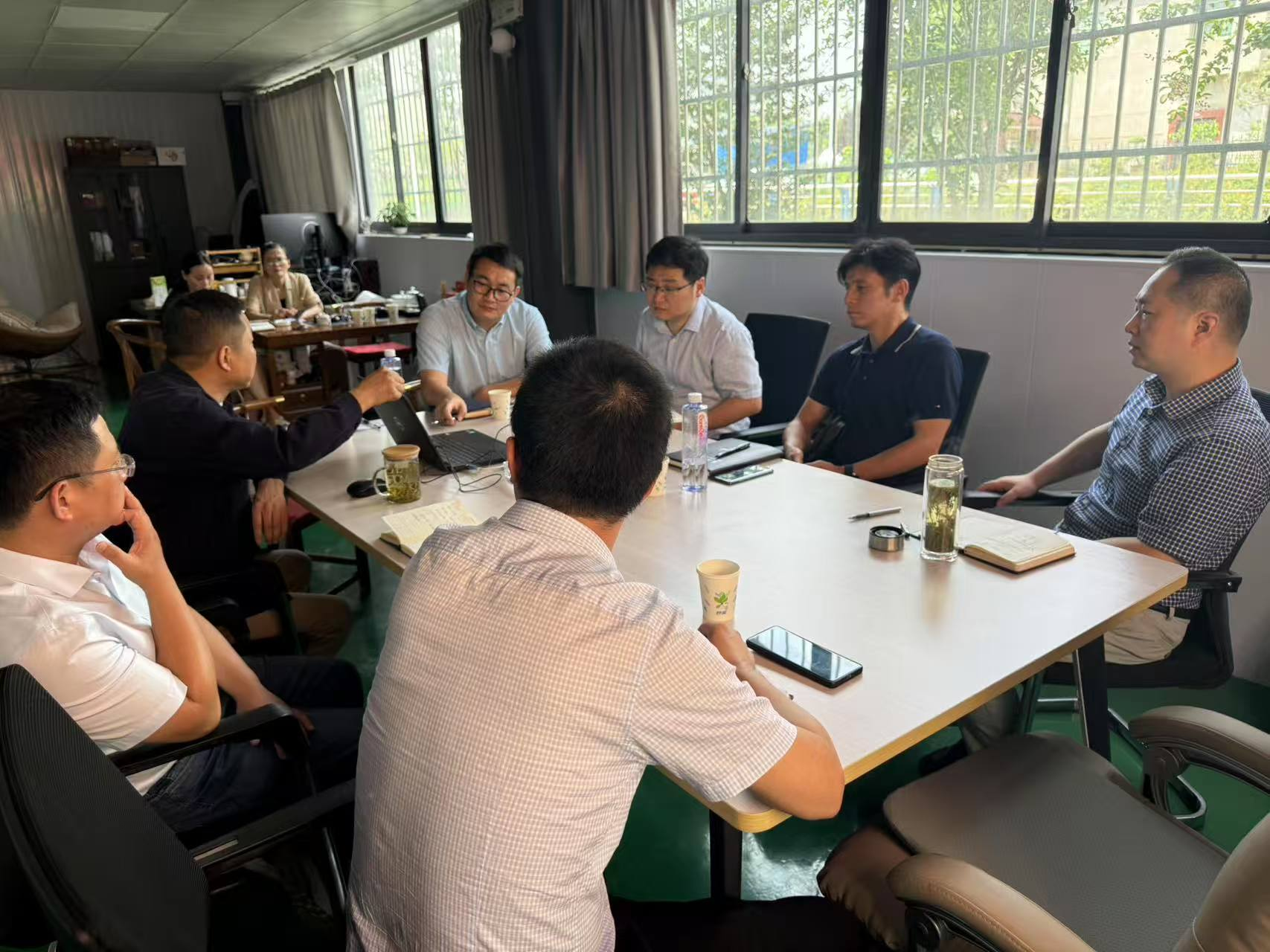 在安庆市鑫益智能制造有限公司生产车间,团队一行实地了解了企业生产流程和技术需求,详细掌握企业在数字化转型过程中面临的挑战。随后座谈交流中,王远志介绍了公司在学科平台建设、科研团队建设及服务地方经济发展等方面取得的成果,双方重点围绕棉花检测软件平台升级和国产操作系统适配展开讨论。