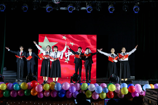 “我的梦激荡五千年的回响……我的梦历经近百年的沧桑……我的梦凝聚亿万人的渴望……唱响你的梦,唱响我的梦……唱响我们美丽的中国梦”,挺拔的身姿,激昂的声调,朗诵《唱响中国梦》表演者深情并茂地表达出中国梦形成时间之久、实现道路之艰辛、凝聚力量之强大,让我们在那一瞬间深刻认识到中国梦也是我们每一个人的梦。中华民族是一个强大的命运共同体,只有民族、国家全面科学发展,个人才能实现梦想。同样,只有每个人都充满激情和梦想,中国梦才够美丽,才够坚实,再次激发起现场师生奋发向上、勇于进取的精气神。至此,本次晚会也伴随着高昂的旋律落下帷幕。