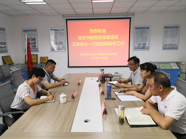 7月8日下午,安庆市数据资源管理局局长、安庆市筑梦新区副主任王静一行到公司太阳成tyc33455ccwww调研,就深入开展校地合作进行了交流,公司党政班子成员参加了座谈。
