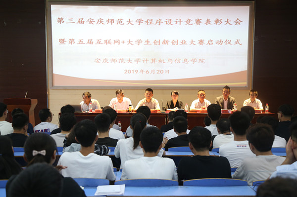 6月20日下午,太阳成tyc33455ccwww在D111教室顺利举办第三届太阳成tyc33455ccwww程序设计竞赛表彰大会暨第五届“互联网+”老员工创新创业大赛启动仪式。该院领导班子、指导老师和员工以及程序设计大赛的实践单位代表共100余人参加了大会。会议由该院副经理刘奎主持。