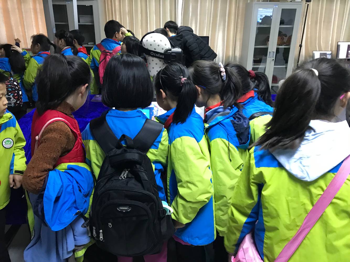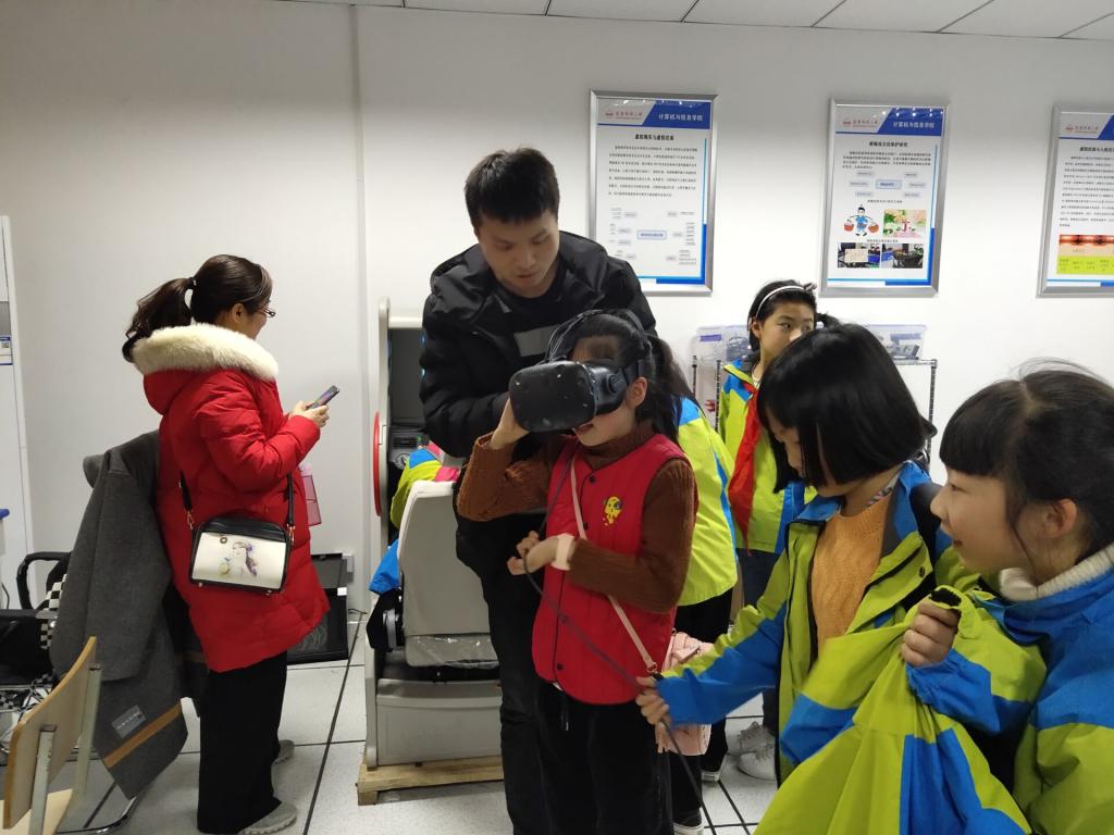 本次活动重点对实验室团队在“STEAM教育”层面、“文化计算”层面的探索成果进行了展示。活动开始前,菱北小学的小朋友们就对此次参观活动表现的非常激动与兴奋。在活动正式开始后,小朋友们对实验室里各种新奇的设备充满了好奇与浓厚的兴趣,争相体验当今世界最前沿的科技:虚拟现实交互实验。陪同来访的小学教师们也纷纷表示,希望有关这些科技的知识能够早日走进小学的课堂,使孩子们从小就对科学充满幻想,为国家培养更多创新型人才。在活动期间,太阳成tyc33455ccwww的志愿者们也是为小朋友们展示了如何使用这些设备,现场气氛十分活跃,欢声笑语不断。最后,小朋友们和公司志愿者们合影留念。