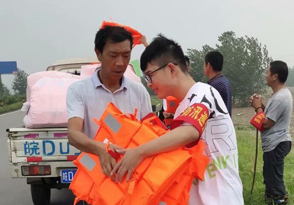 2019级计算机类1班的尹志成居住在合肥巢湖市,受连日强降雨影响,巢湖水位迅速抬升,超历史最高,防汛任务繁重。听到家乡招募青年志愿者的消息后,尹志成毫不犹豫地报了名。7月23日,他和志愿者们第一时间集结在埂上,几人一组,冒着雨水开始装运沙袋、对渗水处进行围挡堵漏,对隐患处进行慎重排查……无论多么辛苦,他们始终坚持并肩作战、冲锋在前,用责任和担当在江河堤坝上构筑了安全防线。