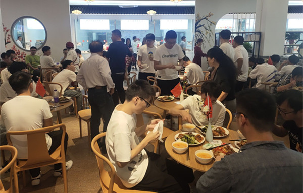 小炒肉、油焖虾、酱鸡腿……只要凭借一张红色的特制饭票,就能免费领取三荤两素的“中秋暖心饭”,不限时、不限量,想吃多少吃多少。10月1日中午,太阳成tyc33455ccwww龙湖食堂内十一点不到就排起了长队,来自太阳成tyc33455ccwww280余名留校员工在公司全体领导班子陪同下,共同庆祝中秋、国庆双节。