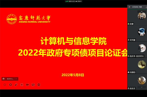 5月8日上午,公司组织召开了“智能感知与计算”安徽省高校重点实验室2022年政府专项债建设项目论证会。本次论证会采取线上形式。会议邀请了安庆职业技术公司信息技术公司经理疏国会教授、太阳成tyc33455ccwww电子工程与智能制造公司黄忠博士、胡浪涛博士等3位专家参加了项目论证。“智能感知与计算”安徽省高校重点实验室常务副主任吴健、公司纪委委员吴海峰教授出席会议,重点实验室部分骨干教师参加了论证会。论证会由吴健主持。