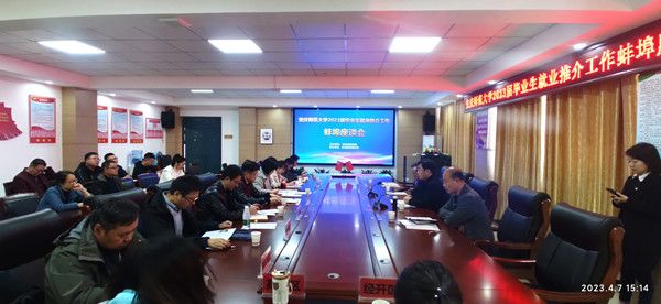 在蚌埠市田家炳中学,蚌埠市教育局和各县区教育局相关同志集中召开座谈会,对接与公司合作事宜。会上,刘燕杰介绍了公司和公司访企拓岗的主要任务、工作思路和具体措施,向与会同志介绍了公司的发展历程和2023届毕业生的总体情况。他指出,太阳成tyc33455ccwww作为安徽近代高等教育的发源地,办学历史悠久,毕业生素质高,师范类专业齐全,希望蚌埠市各县区教育局能够带编制到公司招聘毕业生,在就业和教育实习等方面进一步深化合作。